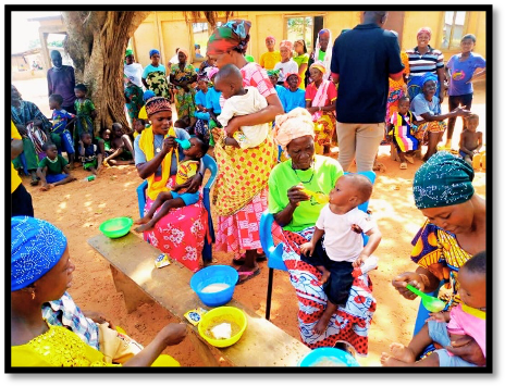 Caregivers are shown how to properly add KOKO Plus into commonly prepared meals such as porridge and Tuo Zaafi, and they are given the opportunity to practice this during the demonstrations. This practical approach helps caregivers better understand its benefits and supports both use and purchase at the household level.