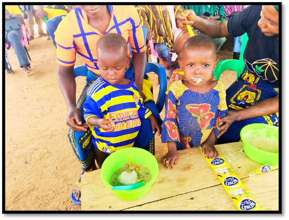 Children were actively present during the sessions, observing and tasting the meals, which further reinforced the acceptability of the improved recipes.